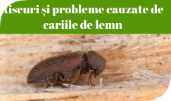 Printre cele mai cunoscute insecte de lemn se regasesc viermii de lemn si termitele. Traiesc si cresc pe suprafetele din lemn, tavane, mobilier si podele din lemn, dar si in obiecte din celuloza, cum sunt cutiile, imbracamintea sau cartile.Cele mai comune semne lasate ale insectelor de lemn sunt zonele de praf sau rumegus create pe suprafetele de lemn.